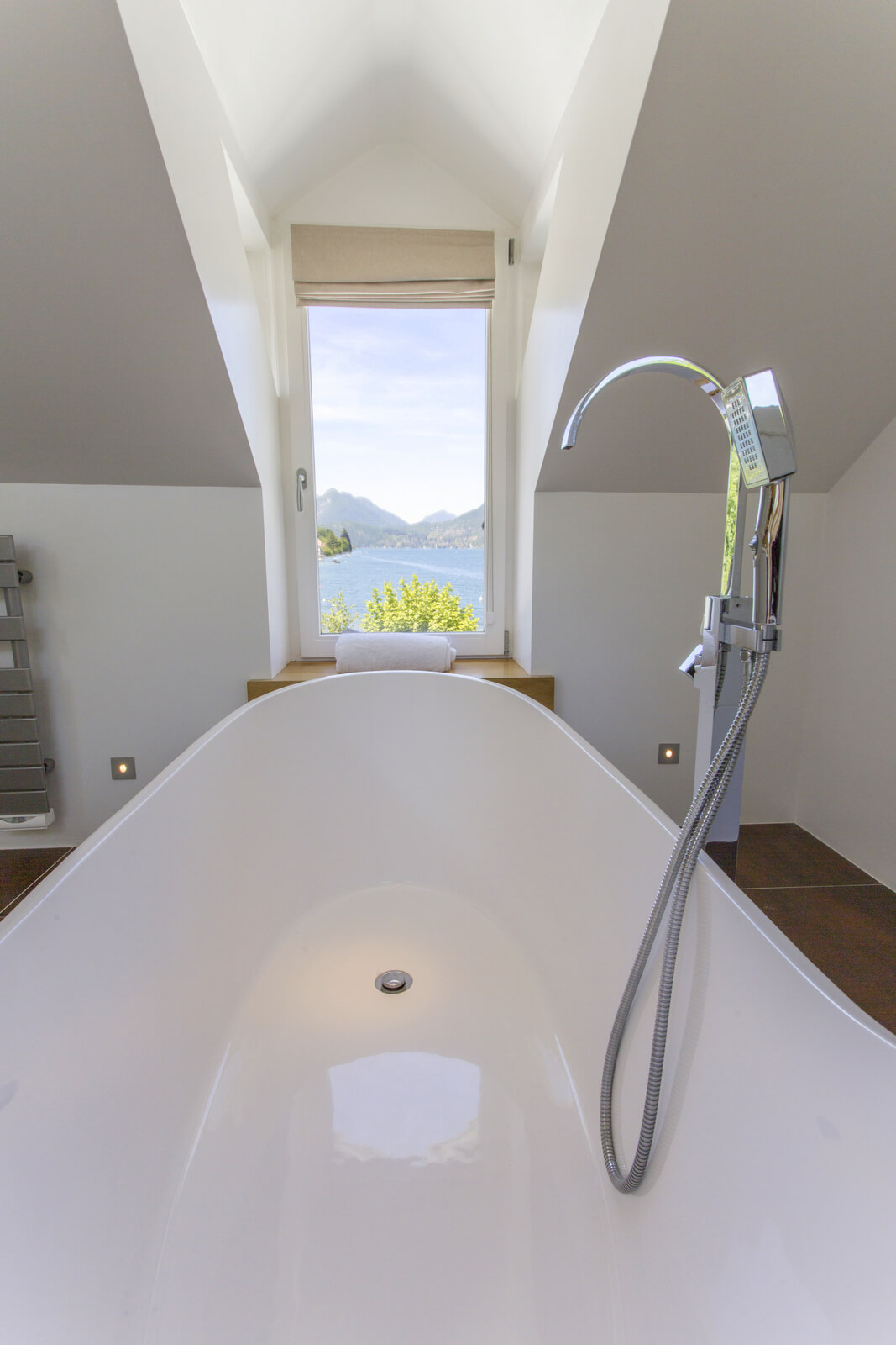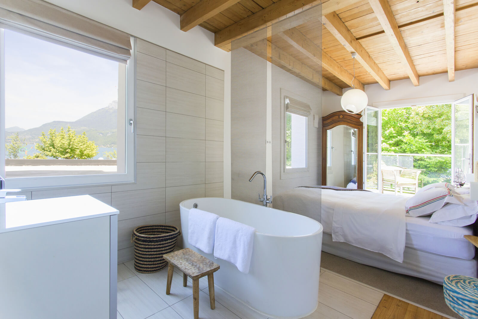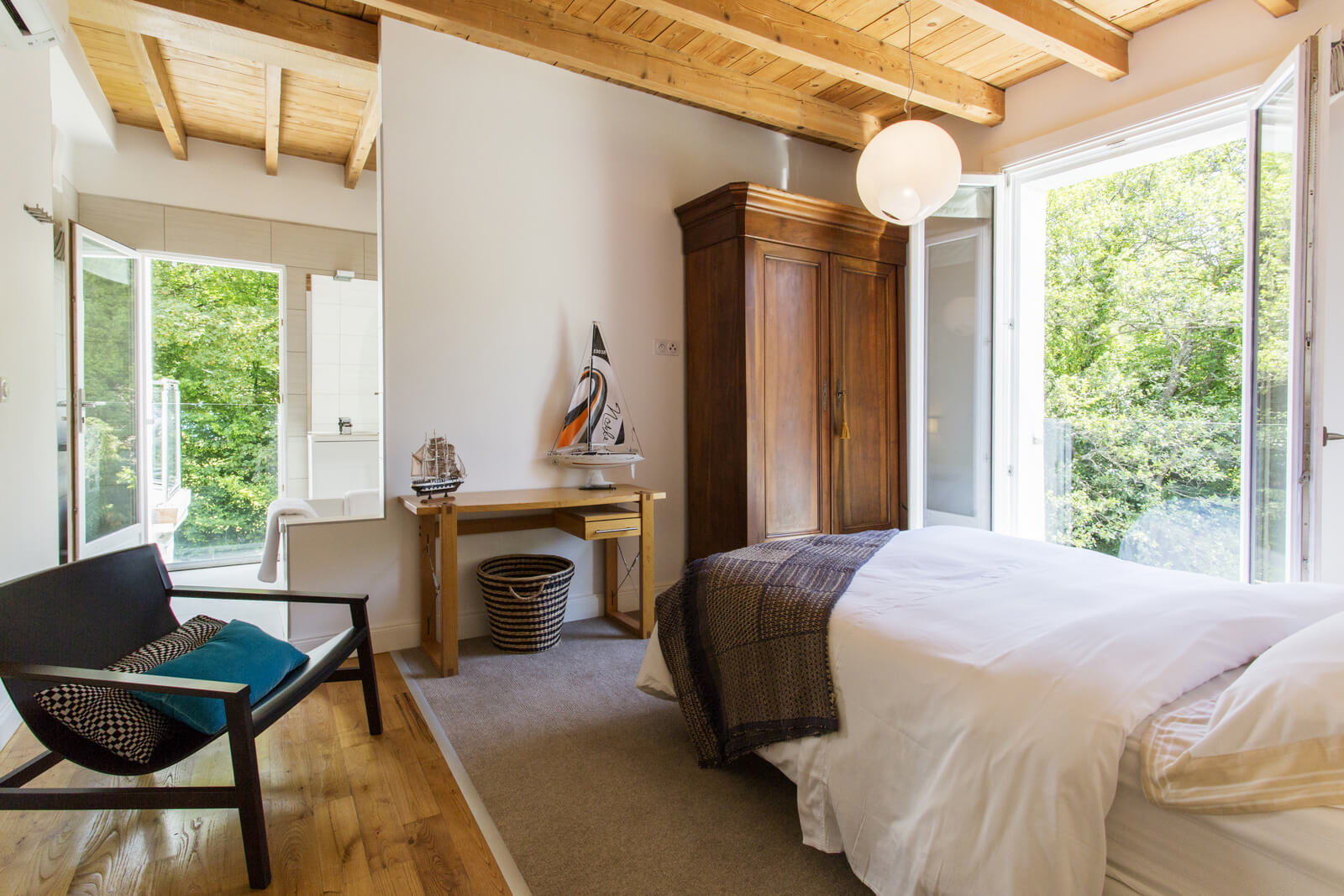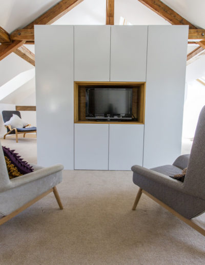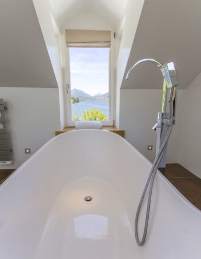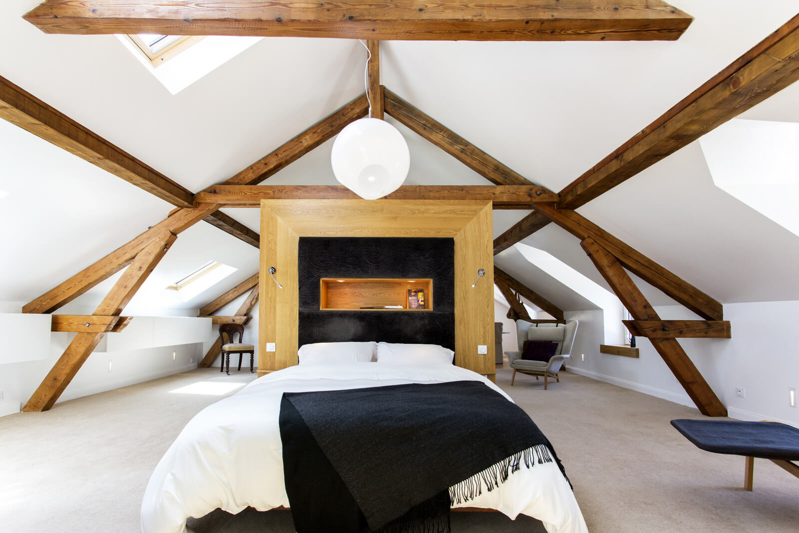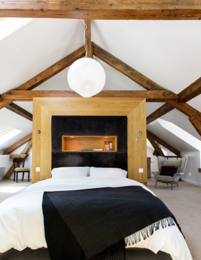 An old hotel on a lake was gutted and then designed to maximise the waterfront position, yet draw in light and create a luxurious boutique vibe. 6 luxurious rooms, all with en-suites, some opening to private decks. The final result was a breathtaking blend of exposed wooden ceilings and floors with sleek modern fittings.